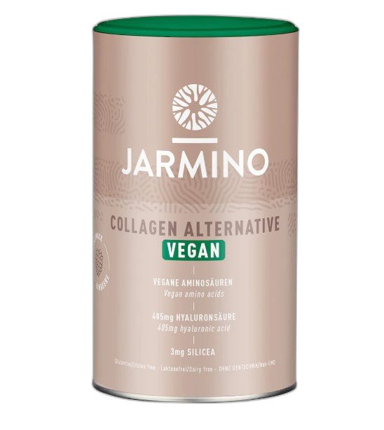 Collagène Vegan Jarmino 450 g, alternative végétalienne avec acides aminés, acide hyaluronique et silice de bambou. Disponible à Paris chez Herba Barona.